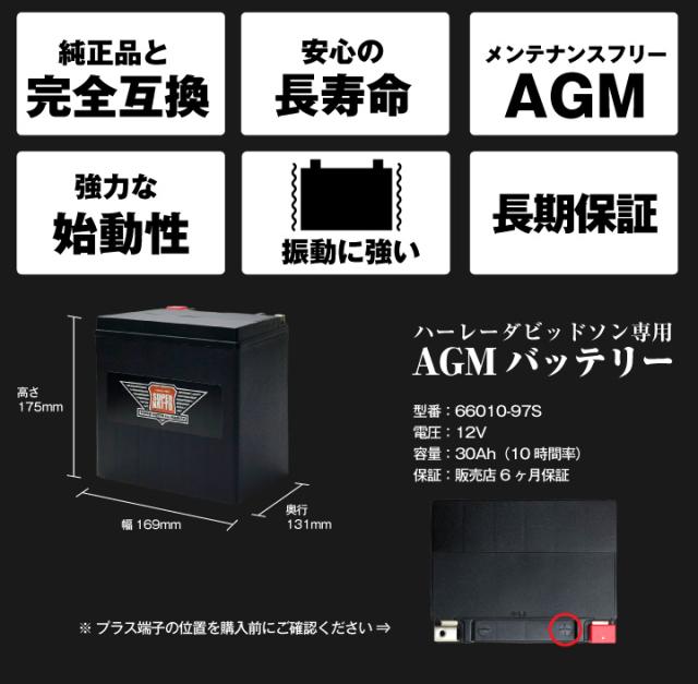 ハーレー専用AGMバッテリー 66010-97S■バイクバッテリー■66010-97A、66010-97B、66010-97C互換■【100%交換保証】【最速納品】スーパーナット ハーレーバッテリー【新品】