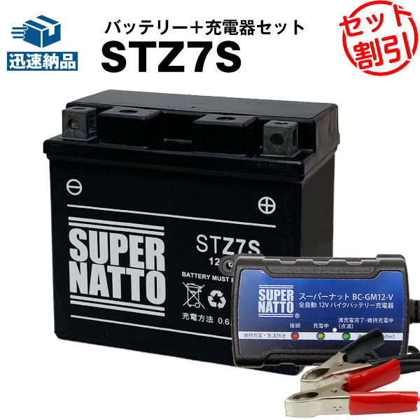 バイクバッテリー充電器+STZ7S セット■バイクバッテリー■YTZ7Sに互換■ ジョルノクレア、XL230、ZOOMER、ディオZ4 DioZ4、XR400 モタード、クレア スクーピー、SEROW250【新品】