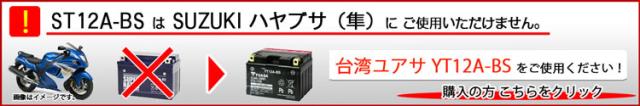 ※SUZUKIハヤブサ(隼)には適合しません。台湾ユアサYT12A-BSをご使用ください。