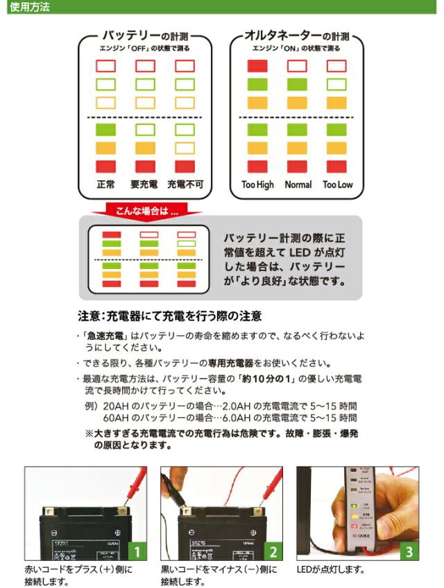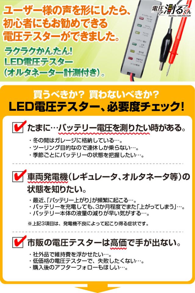 バッテリー電圧テスター(12V用)■スピーディに正しく計測■【オルタネーター計測付き】電圧測るくん