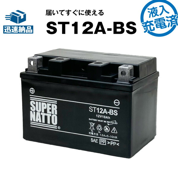 スーパーナットST12A-BS・初期補充電済■バイクバッテリー■YT12A-BS互換■コスパ最強 充電済み(寿命が2倍)■FT12A-BS互換■【届いてすぐに使える】【新品】