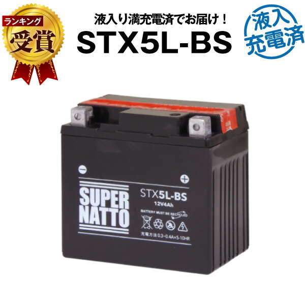 スーパーナットSTX5L-BS・初期補充電済■バイクバッテリー■YTX5L-BS互換■コスパ最強 液入充電済(寿命が2倍)■YTX5L-BS、GTX5L-BS、FTX5L-BS、KTX5L-BS互換■【届いてすぐに使える】【在庫有り・即納】【新品】