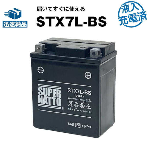 スーパーナットSTX7L-BS・初期補充電済■バイクバッテリー■YTX7L-BS互換■コスパ最強 液入充電済(寿命が2倍)■GTX7L-BS、FTX7L-BS、KTX7L-BS、12V7L-B互換■【届いてすぐに使える】【在庫有り・即納】【新品】