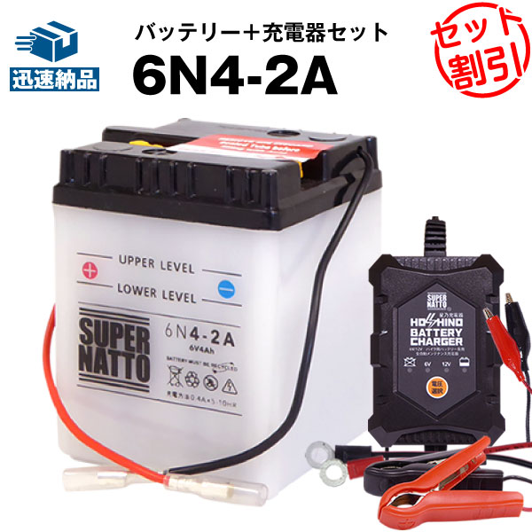 バイクバッテリー充電器+6N4-2A- セット■バイクバッテリー■スーパーナット【長寿命・長期保証】(液入済)
