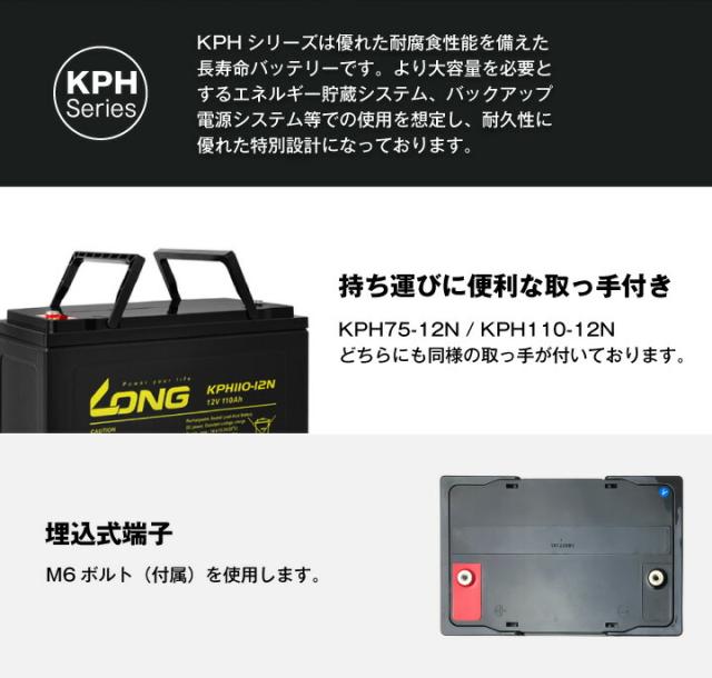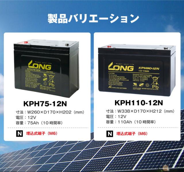 KPH75-12N【お得!2個セット】(産業用鉛蓄電池)【サイクルバッテリー】【新品】GPL12750 互換■■LONG【長寿命・保証書付き】電動駆動機器 電動駆動車両 バックアップ電源 ソーラー発電システム など対応