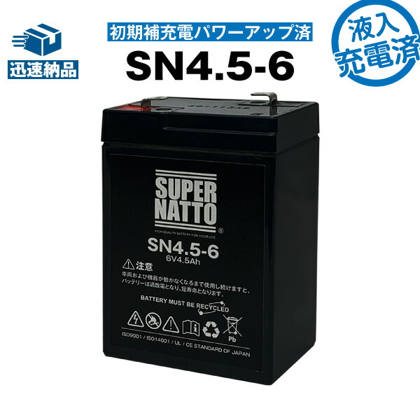 SN4.5-6【初期補充電済】■純正品と完全互換【安心の動作確認済み製品】■PE6V4.5,WP4-6,NP4-6,LC-R064R2P,LCR6V4BP,LCR6V4PL,UP-RW0645CH1,LC-R064R2CH対応■子供用電動乗用おもちゃに対応■スーパーナット【新品】【今だけ!使用済みバッテリー回収無料】