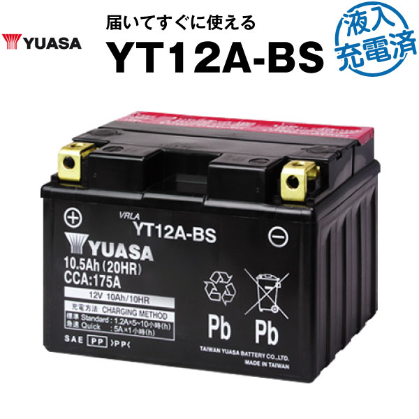 バイク用バッテリー YT12A-BS 密閉型 台湾ユアサ YUASA 正規代理店・保証書付き バイクバッテリー ■ST12A-BS FT12A-BS FTZ9-BS互換 (満充電済)