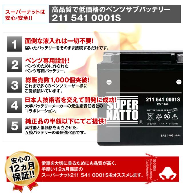 211 541 0001 S ・初期補充電済 ベンツ用サブバッテリー■カーバッテリー■2115410001 SB012AGM互換■【100%交換保証】【最速納品】スーパーナット【新品】