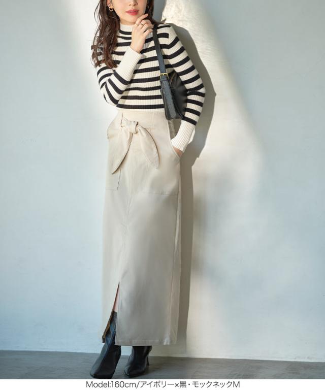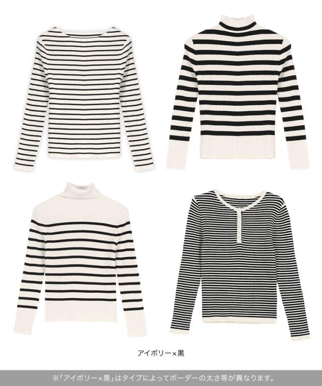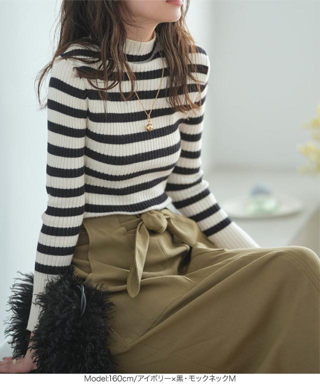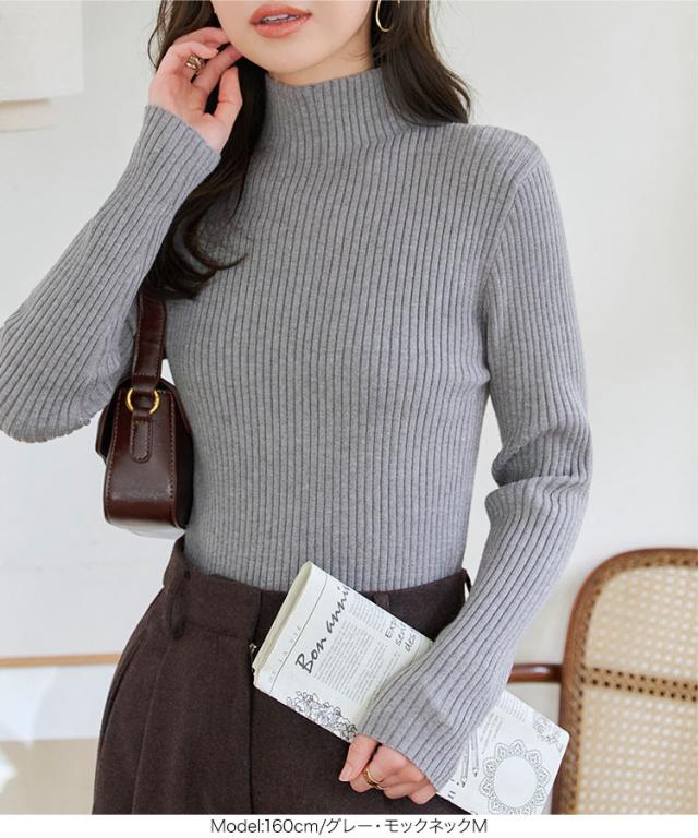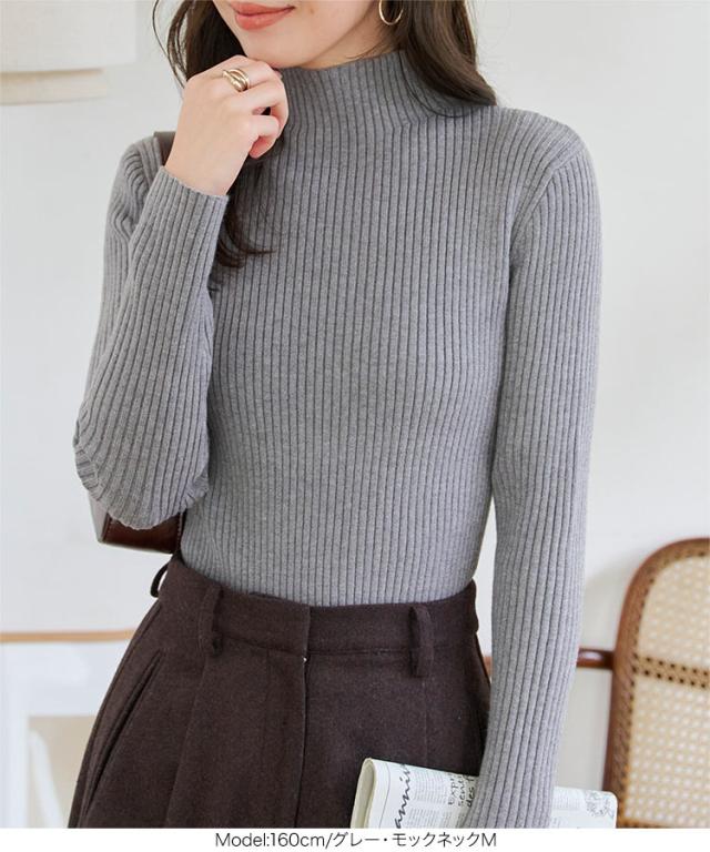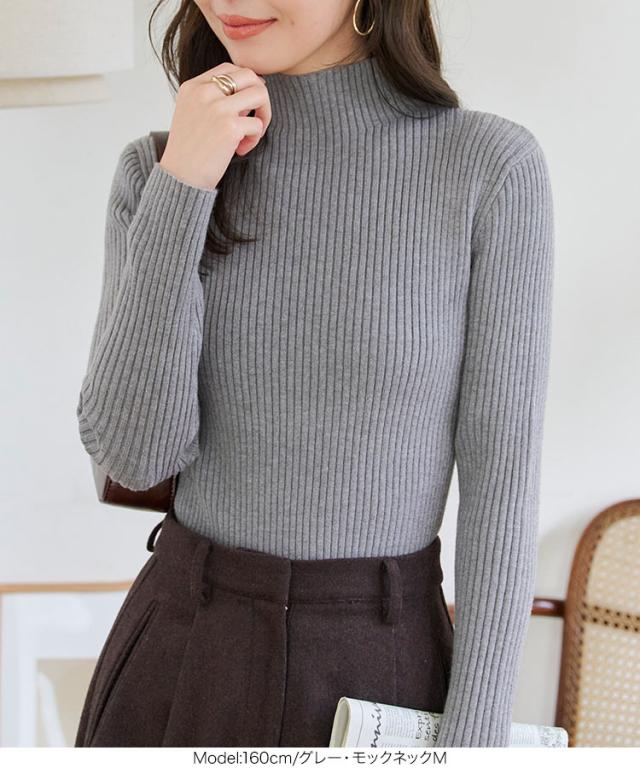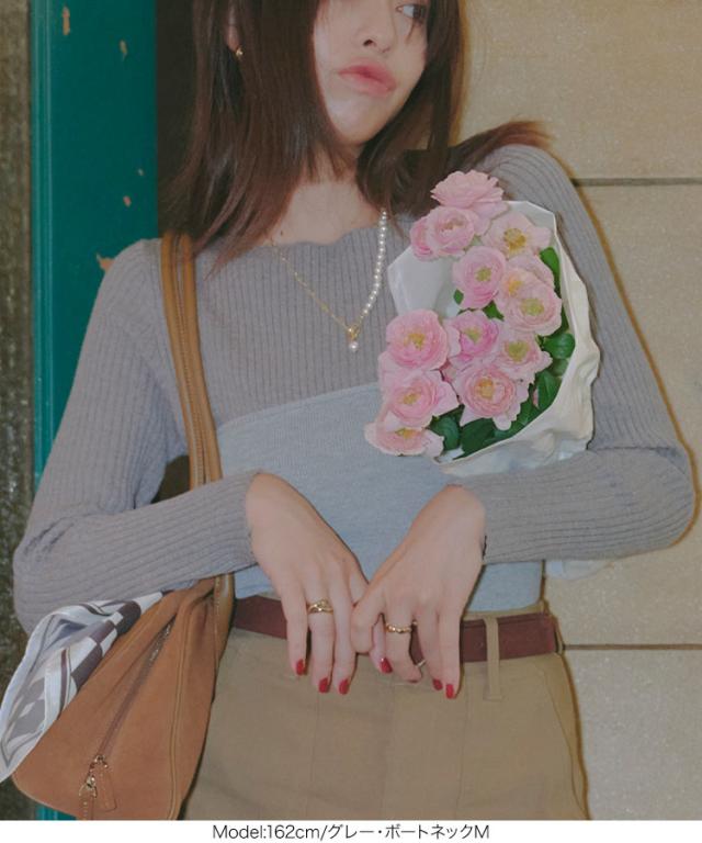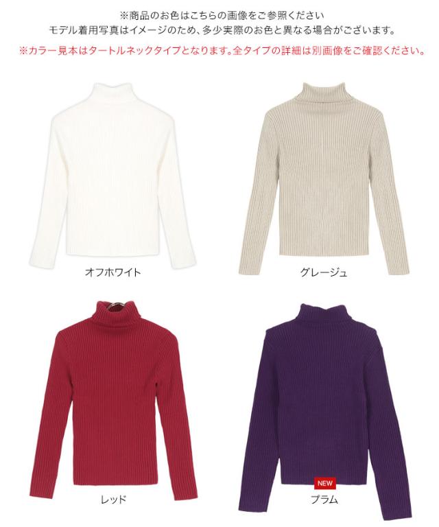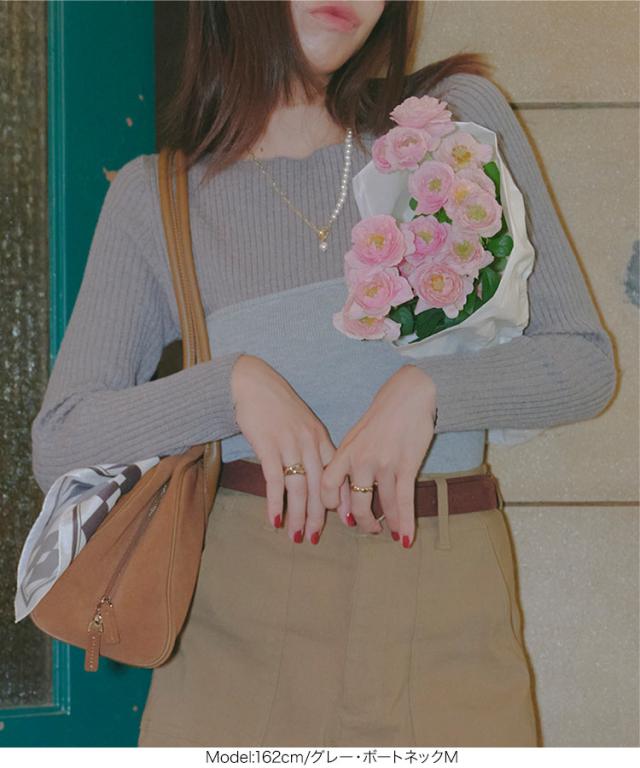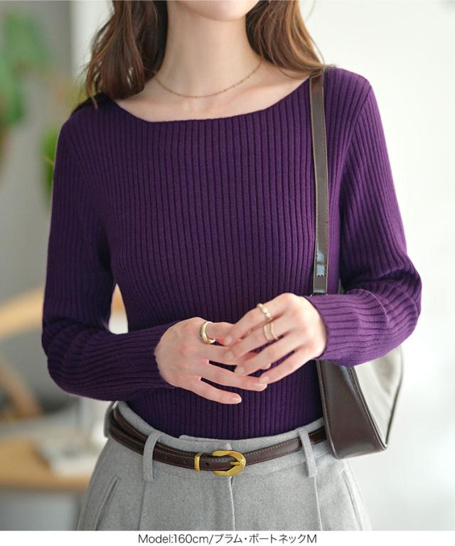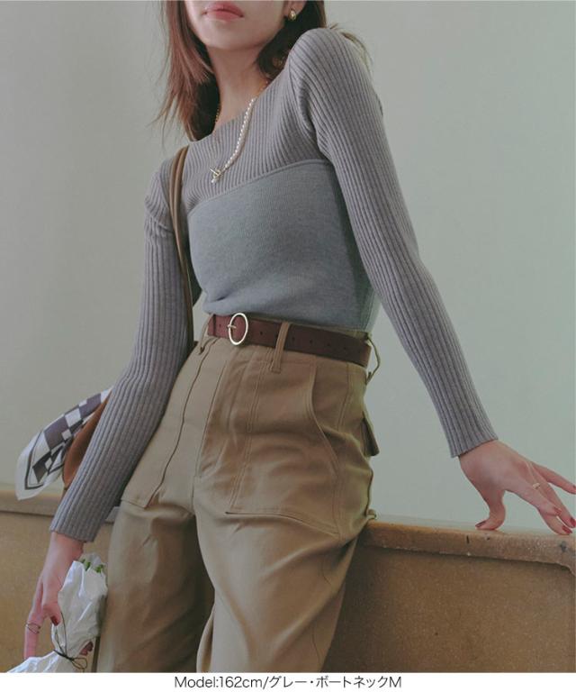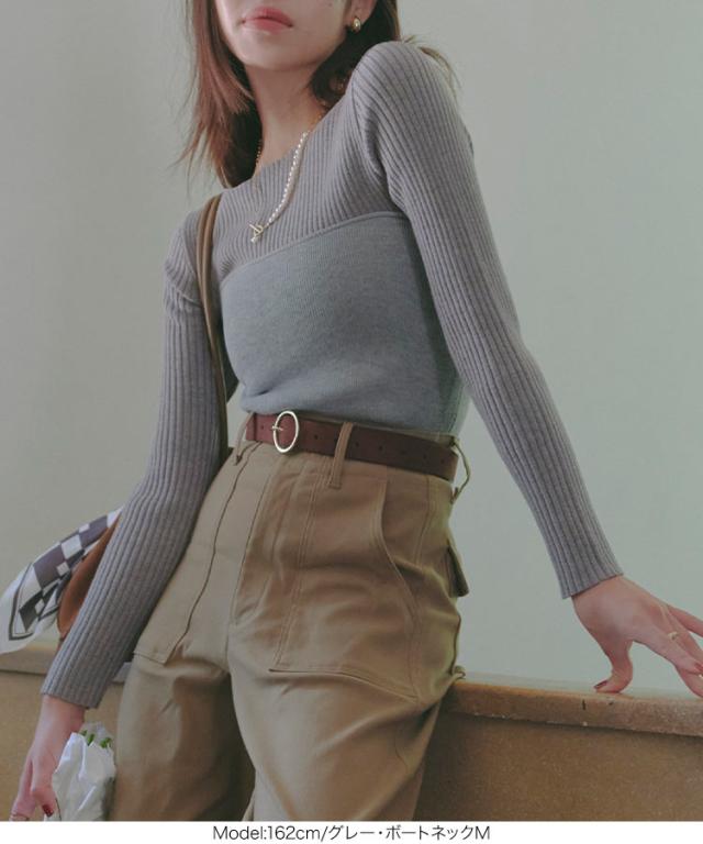 選べるタイプ 選べるサイズ もっちりリブニットトップス C6260 一部予約 ボートネック モックネック タートルネック 長袖