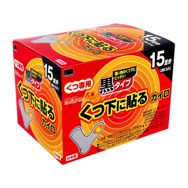 使い捨てカイロ オカモト 快温くん くつ下用 貼るカイロ 黒タイプ 15足分X5箱