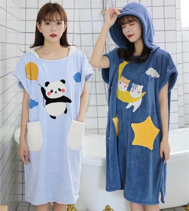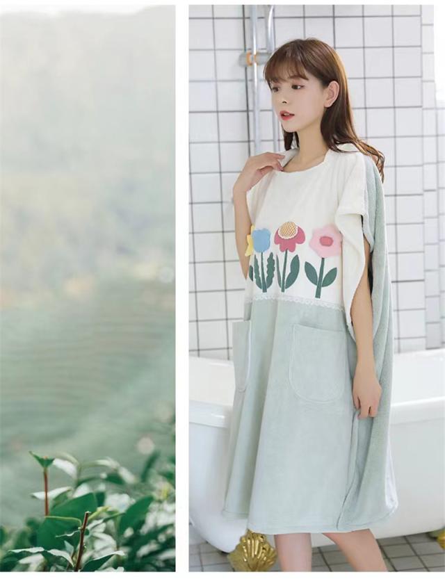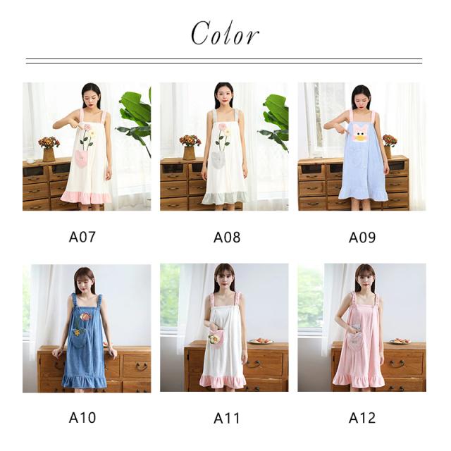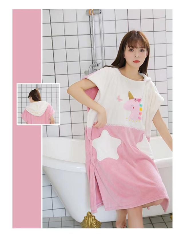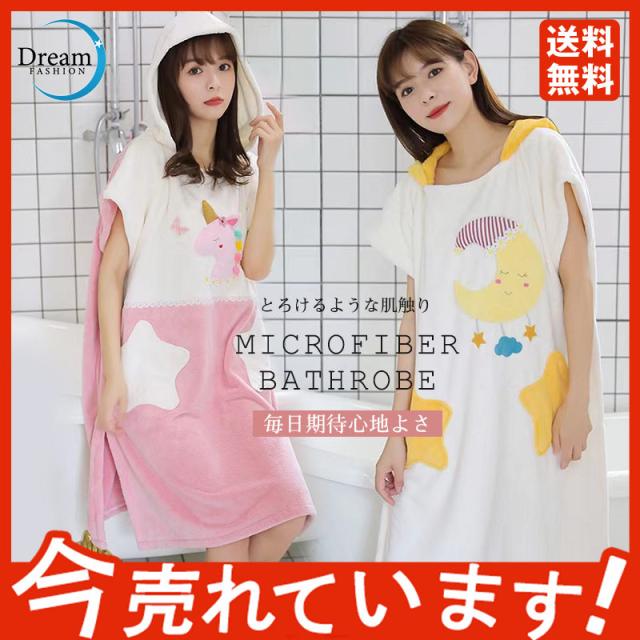 バスローブ レディース バスタオル タオル地 ワンピース ポケット付き 吸水性 肌触り かわいい 贈り物 ギフト