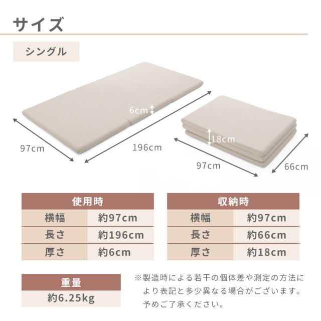 【品名】5層構造三つ折りマットレス シングル 厚さ6cm