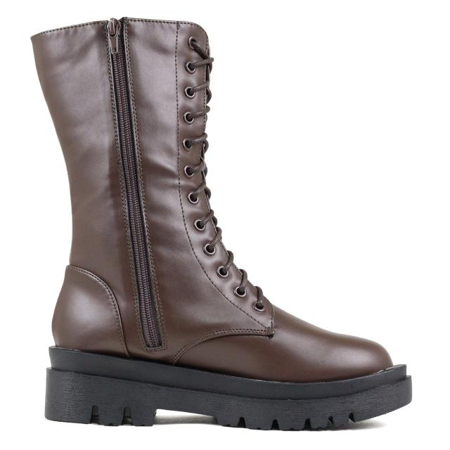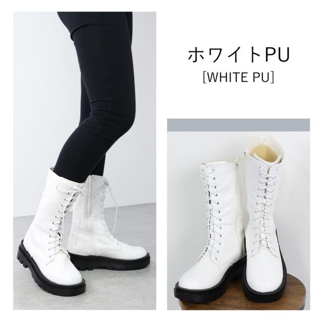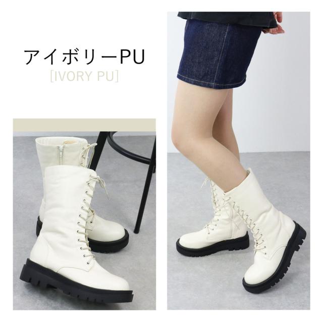 【返品交換不可】ブーツ レースアップブーツ ユニセックス レディース メンズ 厚底 5cmヒール ミドル丈 サイドジップ 防滑 22.0cm〜27.0cm 黒 ブラック リバティードール No.9088