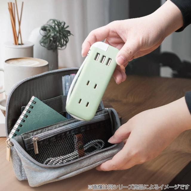 コンセント タップ スリムポータブルコンセント USB‐C USB‐A ユートリムエル ポーチ付 ( ACアダプター USBアダプター 電源タップ 3口 PSEマーク認証済 USB PD USB充電器 持ち運び スマートIC トラッキング防止プラグ 急速充電 )