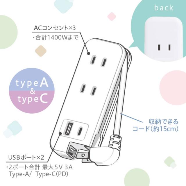 | 備考 | ACコンセント3個口 USBポート:USB‐A×1、USB‐C(PD18W対応)×1 ※PSEマーク取得済み |