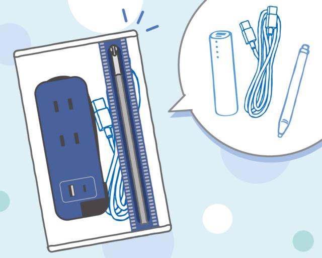 ●ケーブル・バッテリーなどまとめられるポーチ付きです。