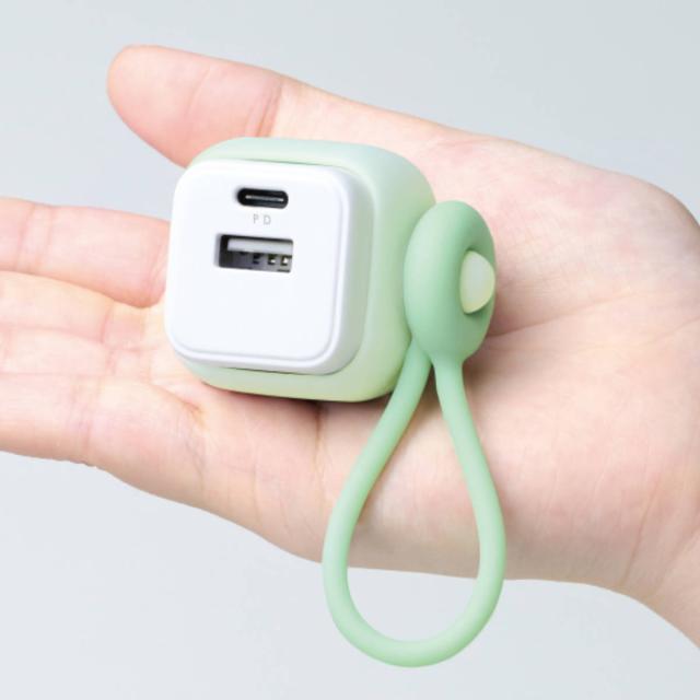 2つのUSBポート(type-Aとtype-C)が付いたUSB充電器です。かさばらないコンパクトサイズで外出先でも家の中でも、サッと持ち運んで充電できます。