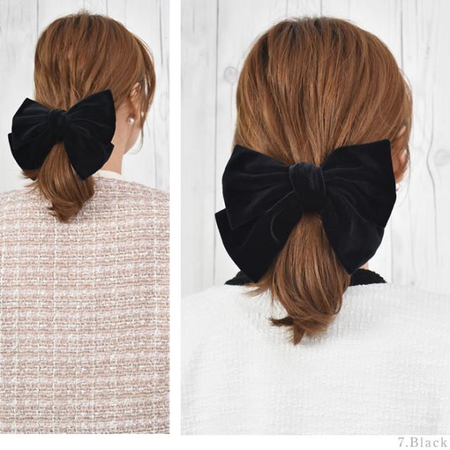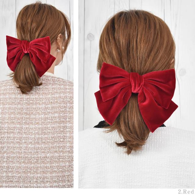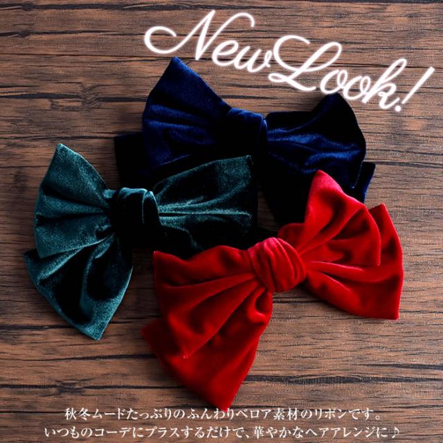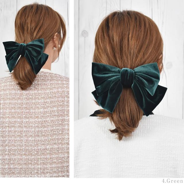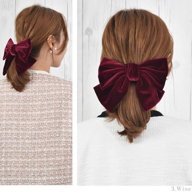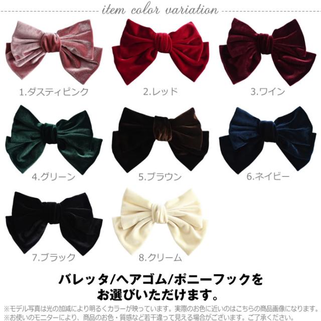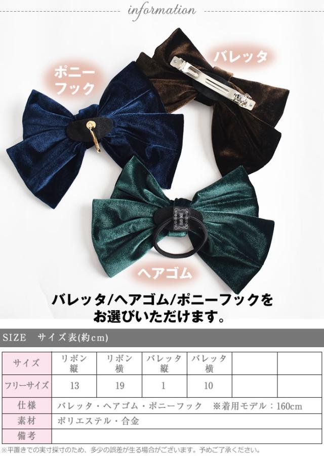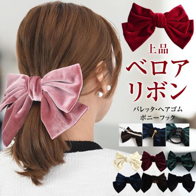 リボン バレッタ ヘアゴム ポニーフック ベロア ヘアアクセサリー 髪飾り ゆうメール便送料無料 シンプル 大きい 結婚式 卒業式 かわいい おしゃれ 髪留め 20代 30代 40代 ゴルフ レディース ベロアリボンヘアアクセ
