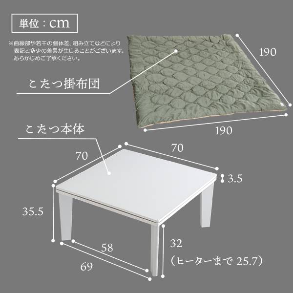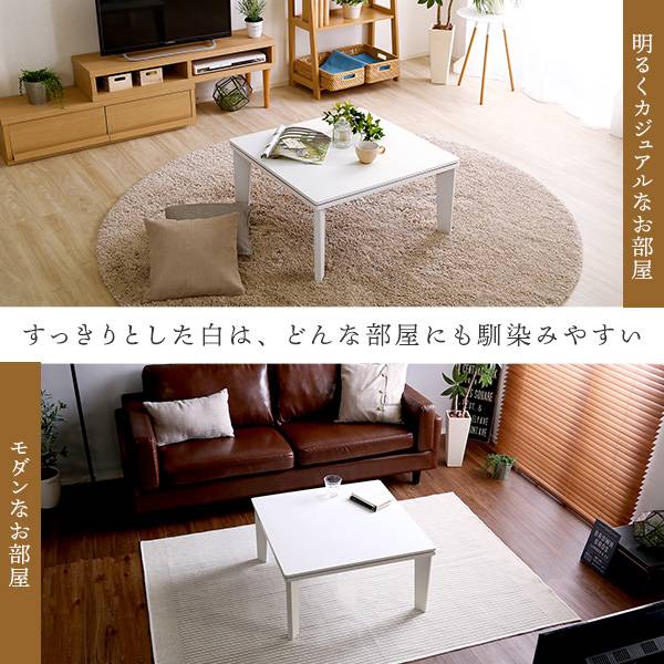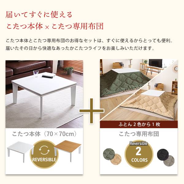 リバーシブル天板のシンプルなホワイトこたつ布団セット(ダウン) 正方形(70×70cm幅)SH-01