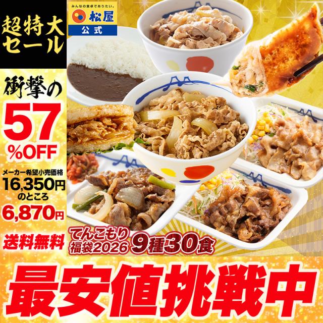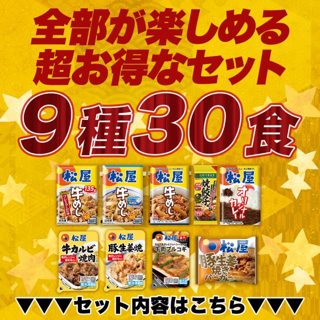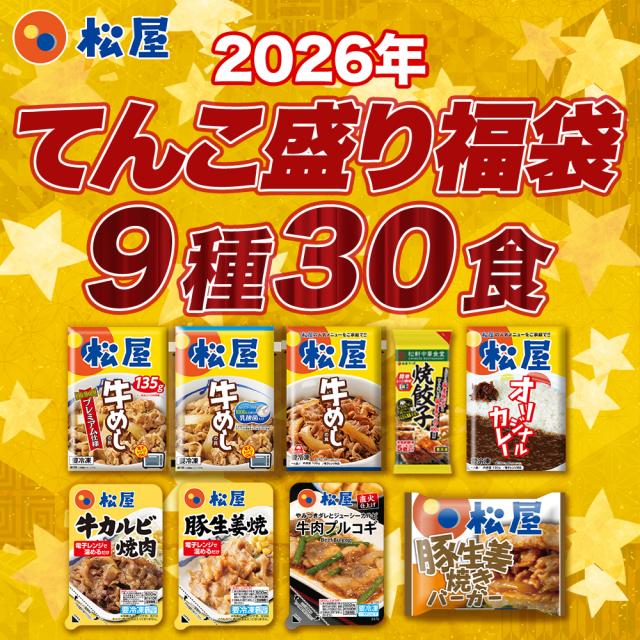 【1食229円!16,350円 → 6,870円!】松屋の2026年てんこもり福袋!9種30食入り 冷凍食品 保存食 一人暮らし 時短 冷食 調理 牛めし 牛丼 カレー 肉 グルメ 食事 おかず セット 冷凍 惣菜 仕送り 福袋 非常食
