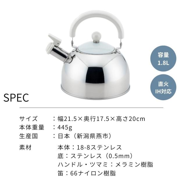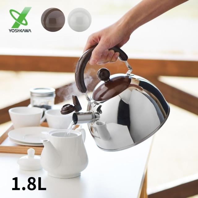ヨシカワショコラ笛吹きケトル日本製ホワイト1.8LSJ2434ブラウンSJ2433おしゃれ直火IH対応ステンレス燕三条やかん