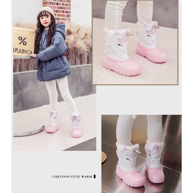 スノーブーツ キッズ 女の子 ベビーブーツ ユニコーン 可愛い ベビー靴 防水 防寒ブーツ 保温 防寒 滑り止め 暖か ウィンターブーツ 裏起毛 雪遊び 通学 外出