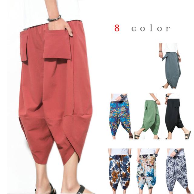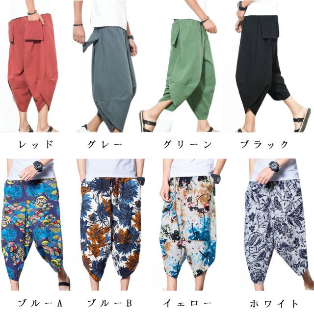 メンズ パンツ リネンパンツ 7分丈 綿麻パンツ カジュアル リラックス パンツ ゆったり おしゃれ 無地 8色選択可