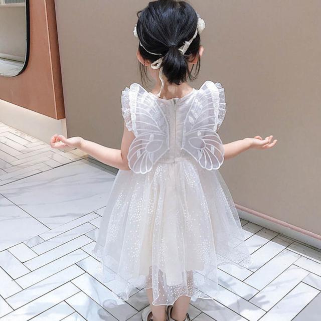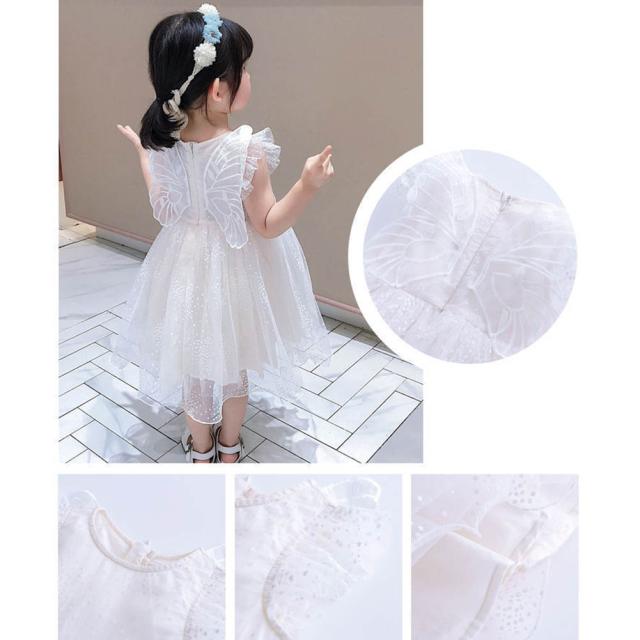 ドレス 子供 女の子 子供ドレス プリンセス 蝶の翼 ワンピース お花の妖精 精霊 蝶々妖精の衣装 キッズコスチューム ピアノ 発表会 パーディー 演奏会 フォーマル 入園式 結婚式 ホワイト 100-140cm