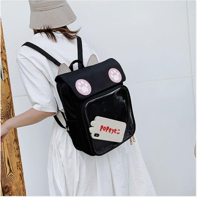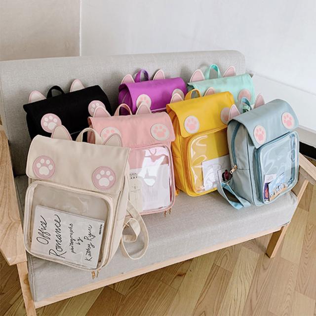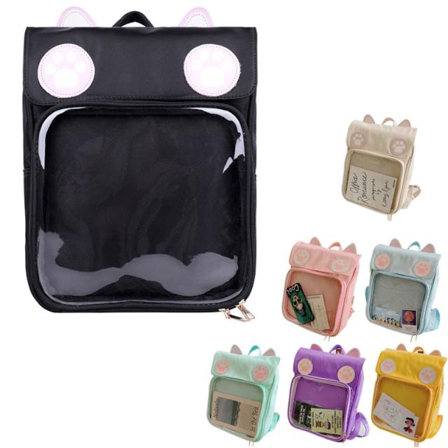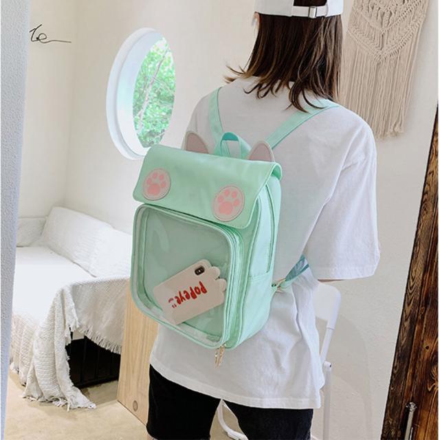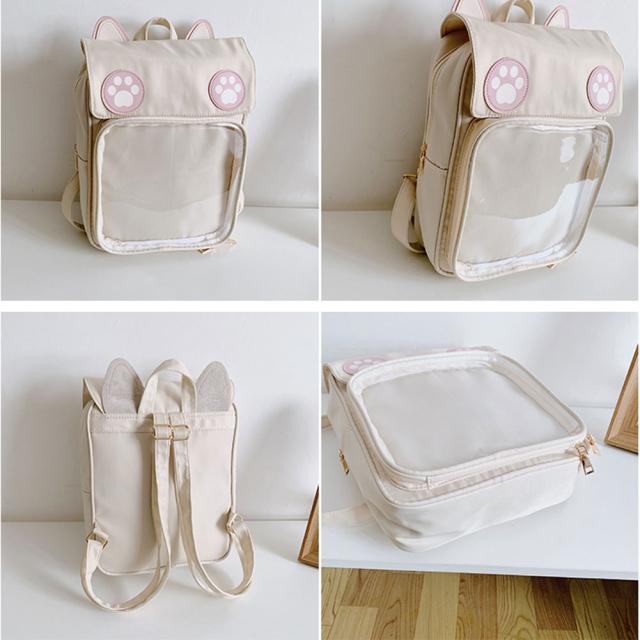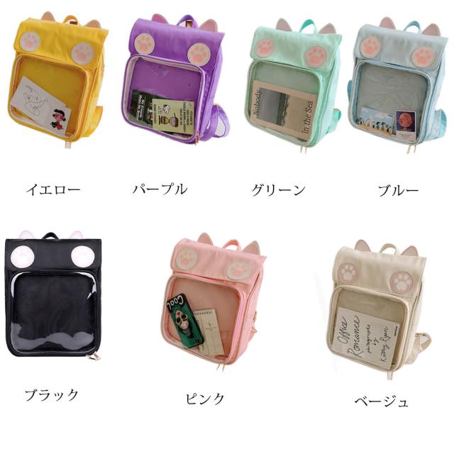 リュックサック 痛バッグ 痛リュック デイパック バックパック キャンバス地 軽量 女の子 痛バ ガールズ クリアバック 猫耳 缶バッジ 透明ポケット 大容量 通学 遠足 プレゼント
