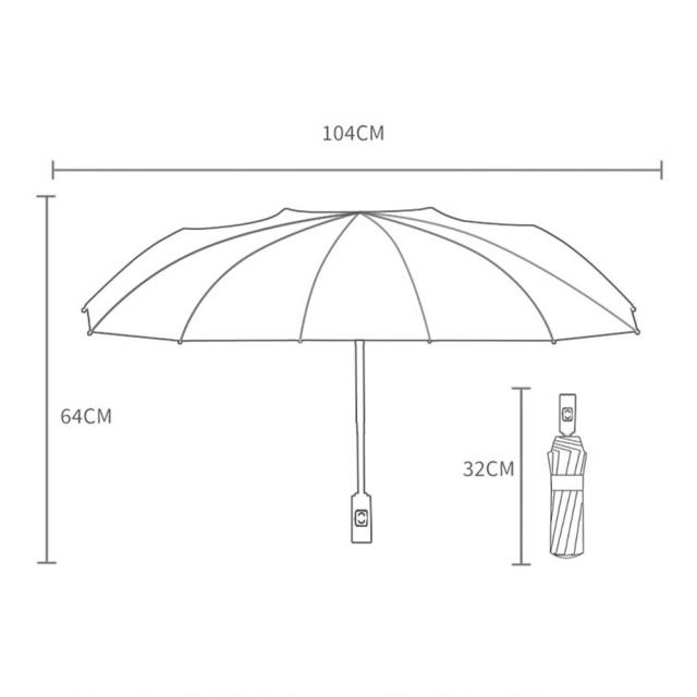 サイズ:傘骨:12本 開く直径:約104cm 重量:約585g 開く高さ:約64cm 折りたたみ:約32cm