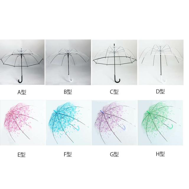 透明長傘 見通し ジャンプ式 透明ビニール長傘 桜柄 透明傘 ドーム型 自動オープ 雨傘 長傘 丈夫 耐風 軽量 バブルアンブレラ 8本骨 おしゃれ かわいい 男女兼用