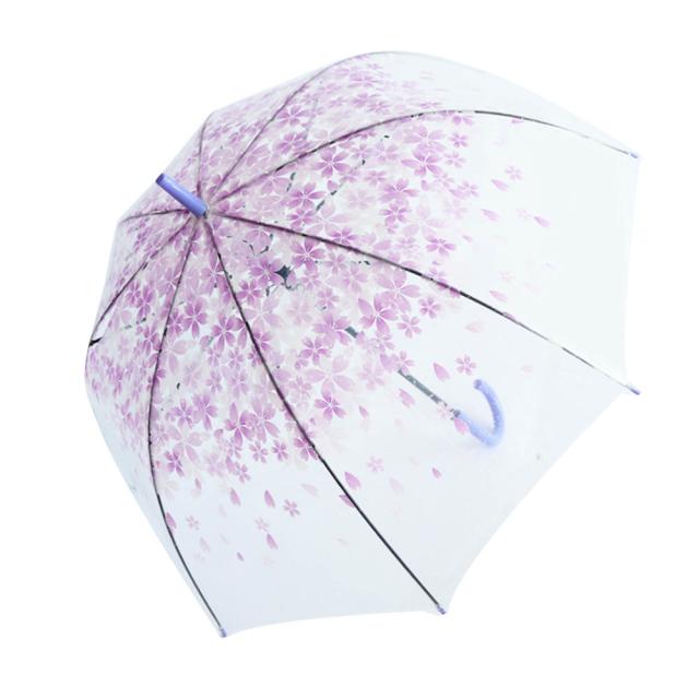 商品:透明長傘 見通し ジャンプ式 桜柄 透明傘 ドーム型