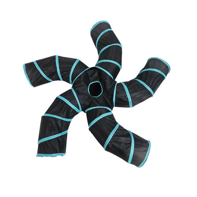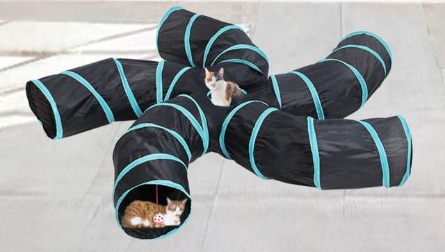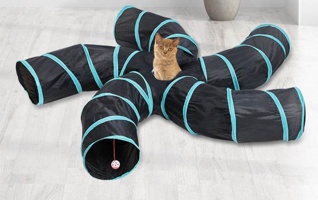 トンネルには5つの入り口と真ん中に小さな窓があり、猫は小さな窓から飛び降りることができます。長くて狭いトンネルがネコちゃんの好奇心をくすぐり、飽きることなく遊んで頂けます。