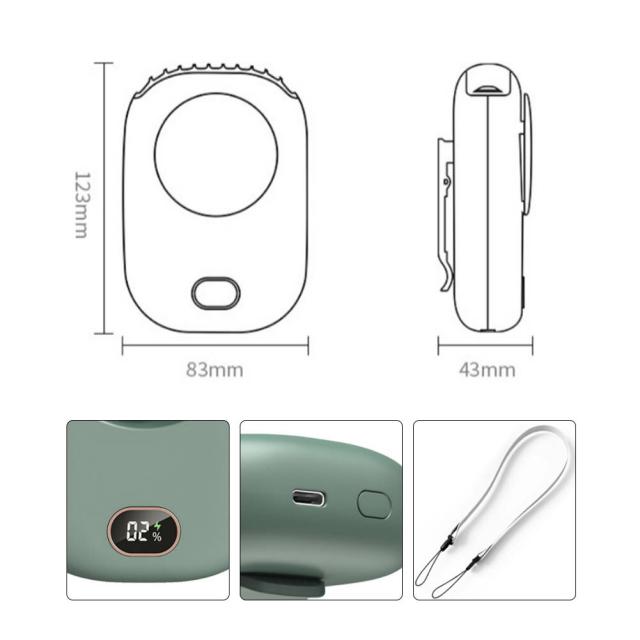 携帯扇風機、首掛け、腰ベルトファン、卓上に置くの三つの使い方。風量が三段階調節できるミニファンです。ポタンを押すと簡単に風力を弱風>自然風>強風の順で切り替えることができます。空気出口は扇風機の上部に設置されており、顔に直接吹き付けて涼しく感じることができます。首掛け扇風機にはストラップが付いており、首に掛けて手を完全に解放することができます。