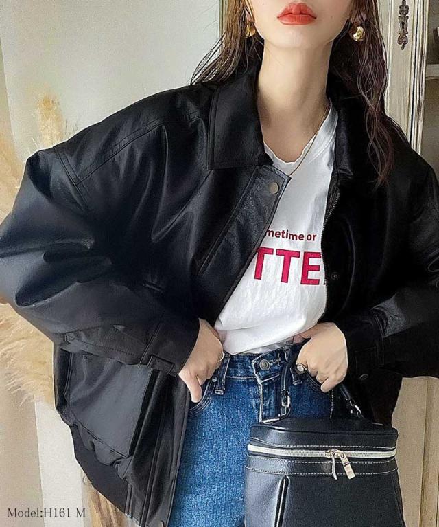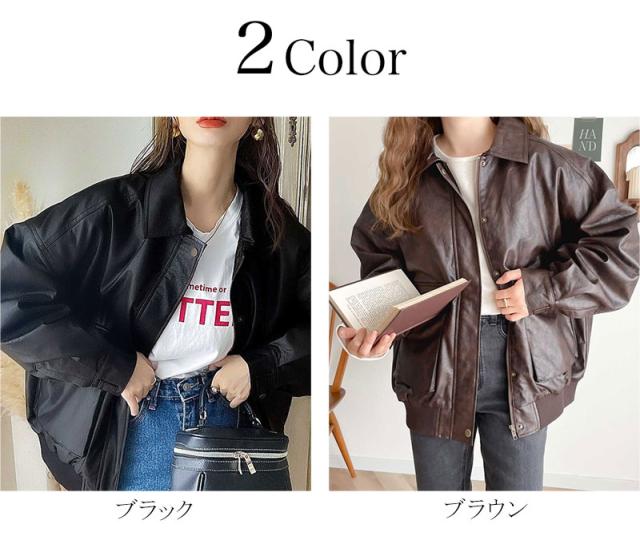冬新作 クラシカルエルフ レディース 体型カバー《javaコラボ》アウター ジャケット フェイクレザー ヴィンテージ オーバー ブルゾン 大きいサイズ jv1070011