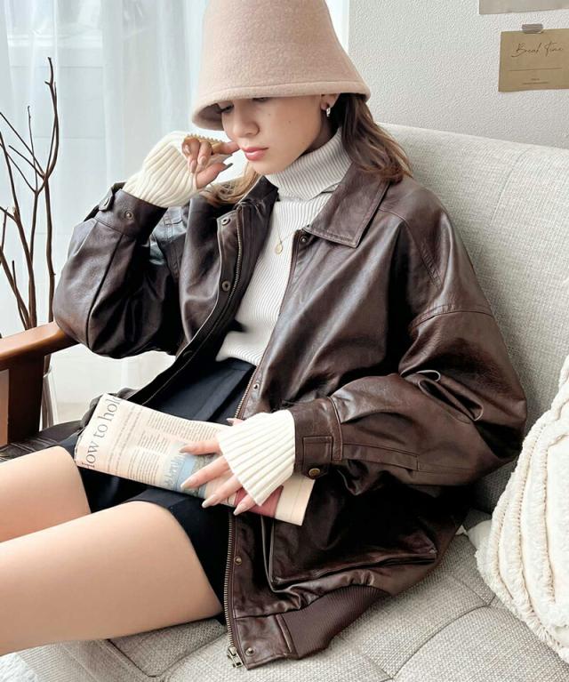秋冬のワードローブに欠かせないフェイクレザーブルゾン。