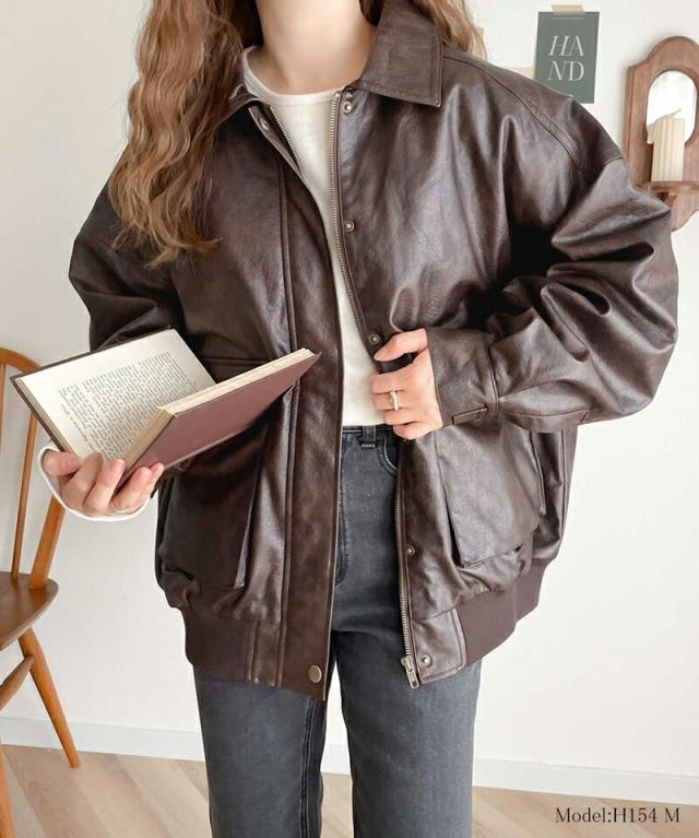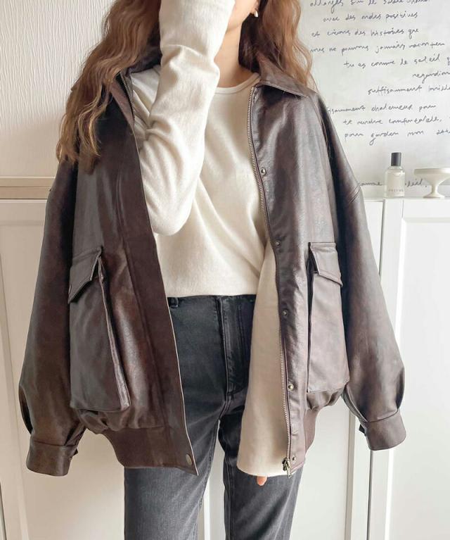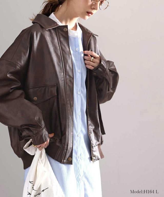 ★《JaVaジャバ コラボ》1点投入で即、秋めく!フェイクレザーヴィンテージオーバーブルゾン★