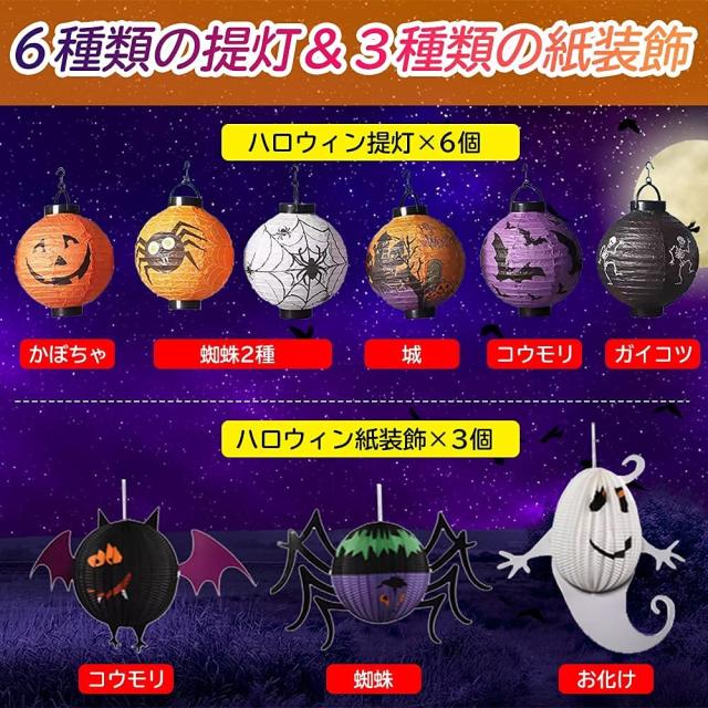 ■ 提灯6種類: かぼちゃ・蜘蛛(オレンジ)・蜘蛛(白)・城・コウモリ・ガイコツ