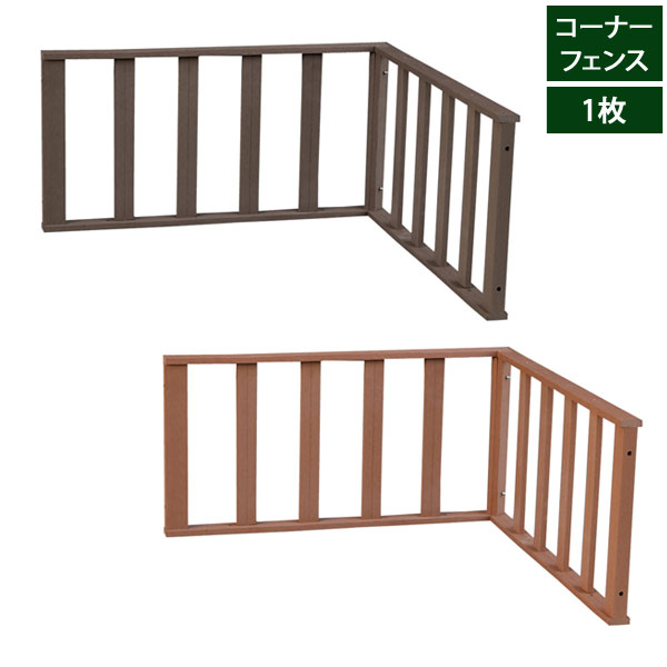 「エコフィール」シリーズ用のコーナーフェンス。別売りの縁台やステップ、ストレートフェンスとの組み合わせで、デザイン性の高い、お洒落なウッドデッキをお作りいただけます。