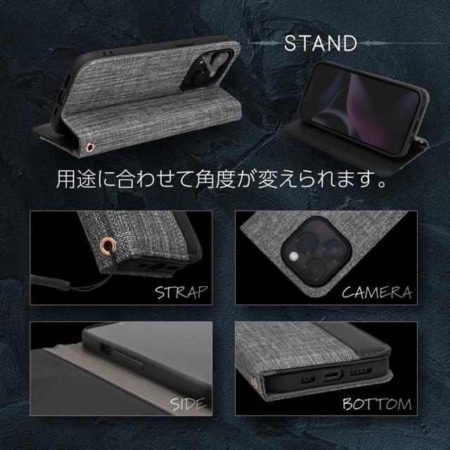 iPhone14Pro ケース 手帳型 iPhone 14Pro カバー PUレザー ファブリック素材