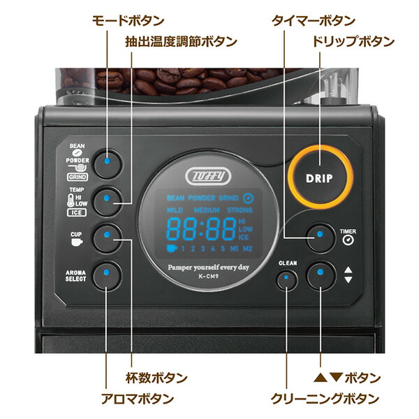 | トフィー Toffy コーヒーメーカー 全自動ミル付カスタムドリップコーヒーメーカー コーヒーマシン K-CM9-RB/-GE |