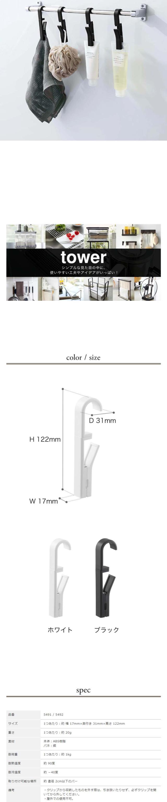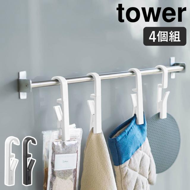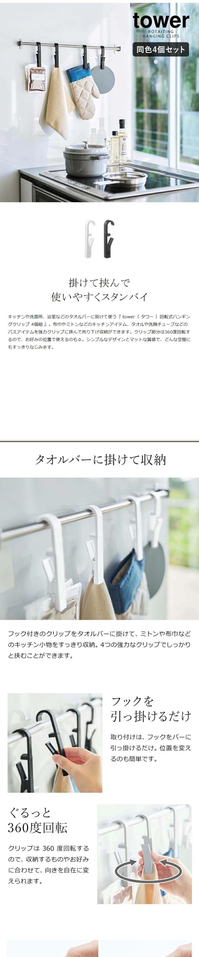 [ 回転式ハンギングクリップ 4個組 タワー ]山崎実業 tower クリップ 4個セット キッチン フッククリップ 洗面 浴室 便利グッズ フック 布巾 収納 掛け ふきん掛け 360度回転 シンプル 北欧 おしゃれ モノトーン yamazaki ブラック ホワイト 5491 5492
