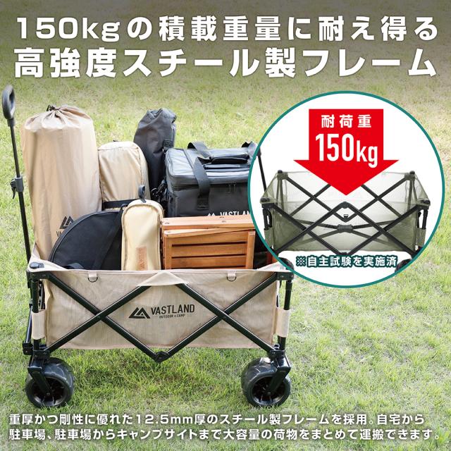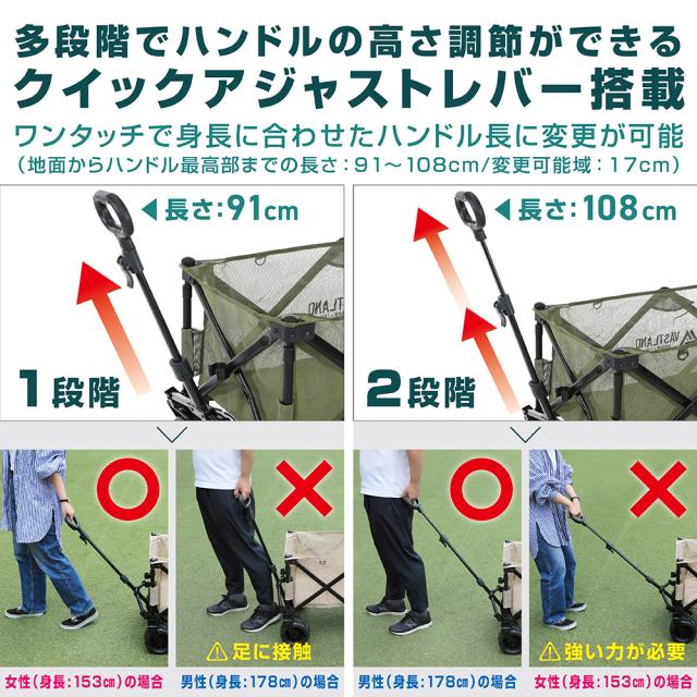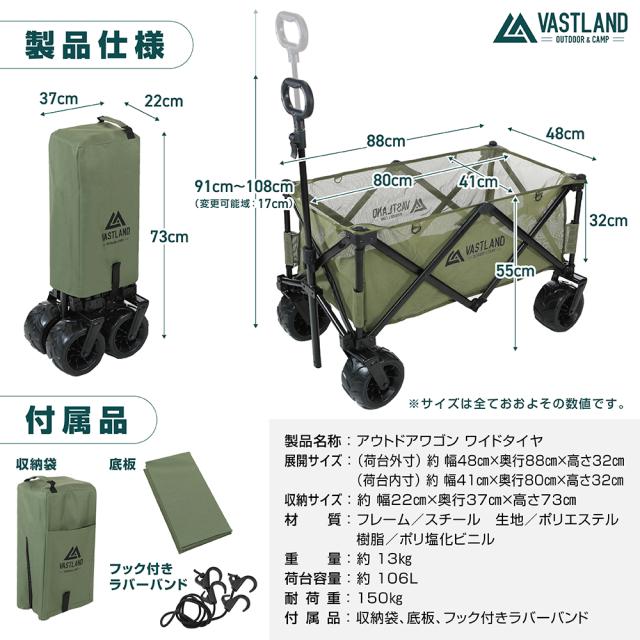 VASTLAND アウトドアワゴン キャリーワゴン ワイドタイヤ 水洗い可能 メッシュ生地 高さ調節ハンドル 積載容量108L 耐荷重150kg