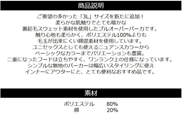 ベーシックカラーからトレンドカラーまで、バリエーション豊富な綿混素材のシンプルな無地のスウェットパーカー 25aw M L LL 3L