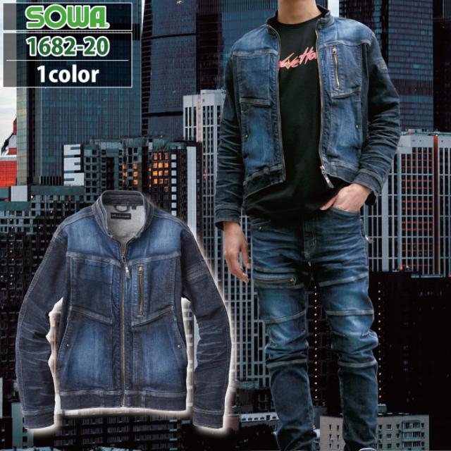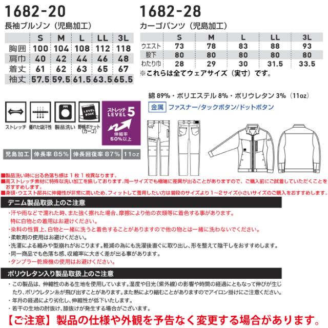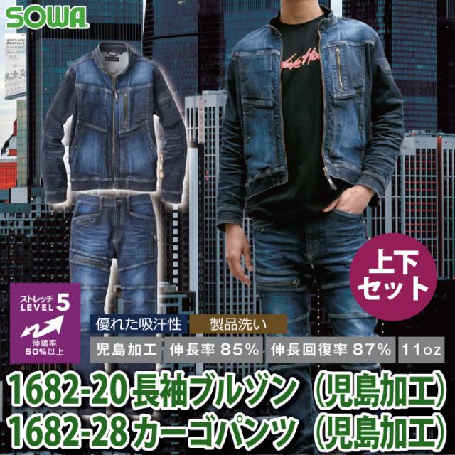 桑和 SOWA 作業服 上下セット 1682-20 長袖ブルゾン(児島加工)S-3L と 1682-28 カーゴパンツ(児島加工) S-3L 秋冬用 かっこいい おしゃれ