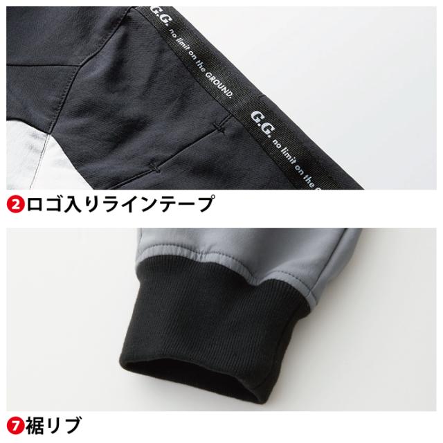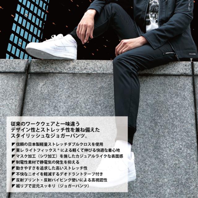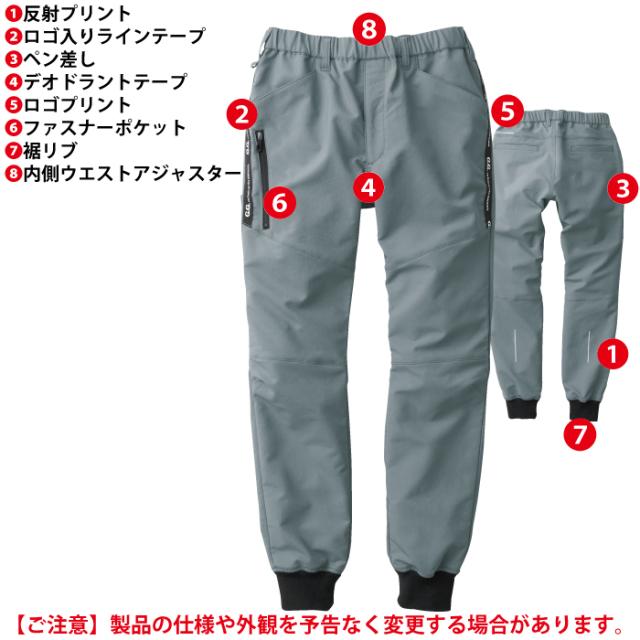 ◇機能:制電性素材・ストレッチ・消臭・イージーケア・反射プリント・ロゴ入りラインテープ・ペン差し・デオドラントテープ・ロゴプリント・ファスナーポケット・裾リブ・内側ウエストアジャスター