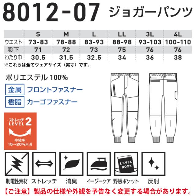 桑和 SOWA 作業服 秋冬用 8012-07 ジョガーパンツ 4L