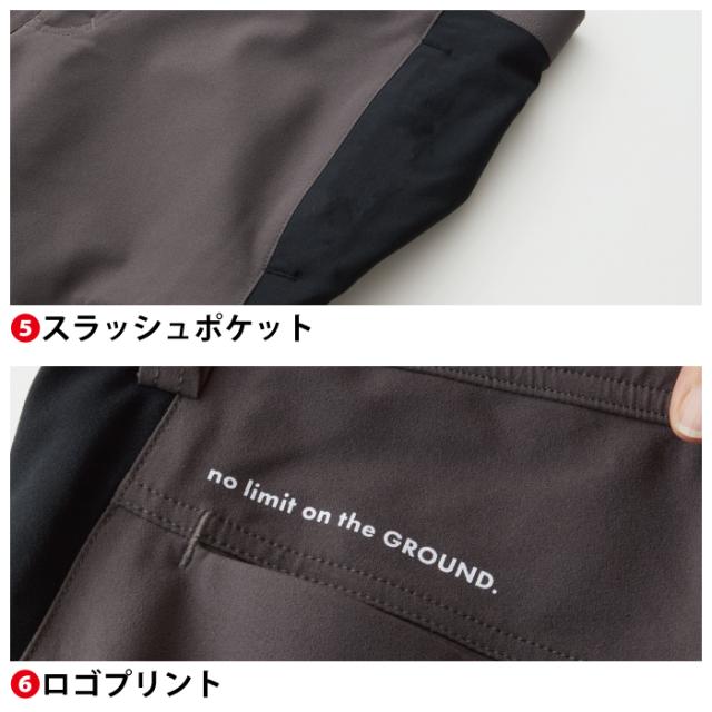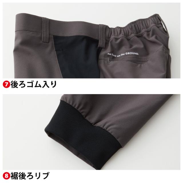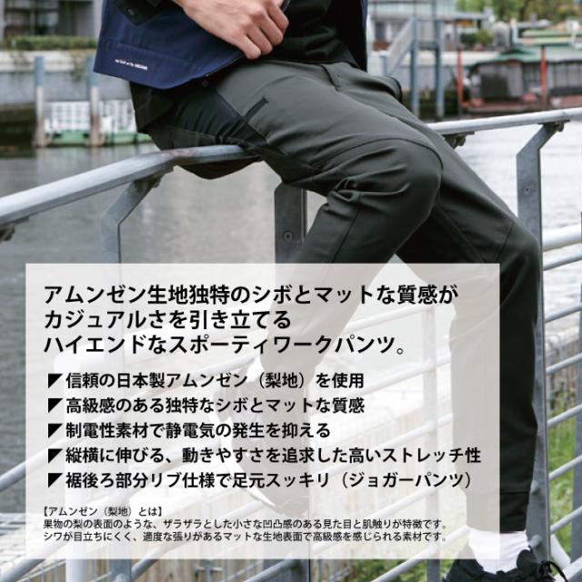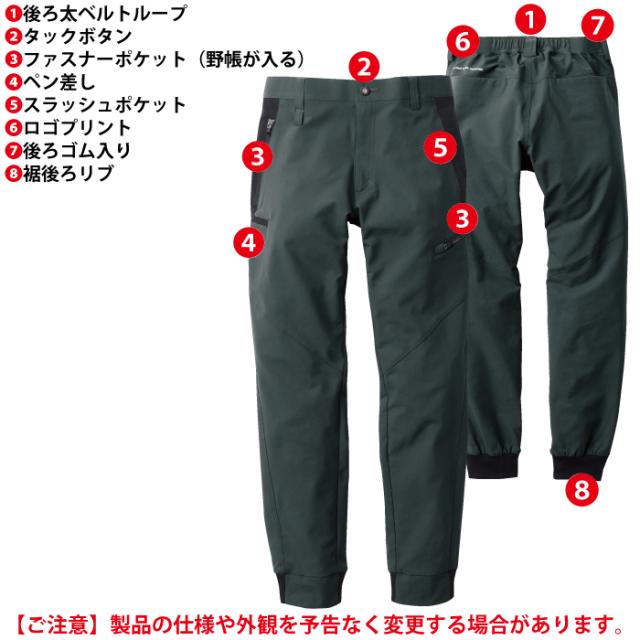 ◇機能:制電性素材・ストレッチ・イージーケア・後ろ太ベルトループ・タックボタン・ファスナーポケット(野帳が入る)・ペン差し・スラッシュポケット・ロゴプリント・後ろゴム入り・裾後ろリブ