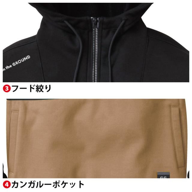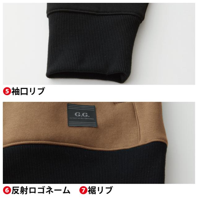 ◇機能:二重組織・ストレッチ・裏フリース・反射ロゴプリント・フード絞り・カンガルーポケット・袖口リブ・反射ロゴネーム・裾リブ・デオドラントテープ