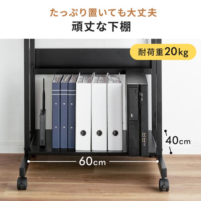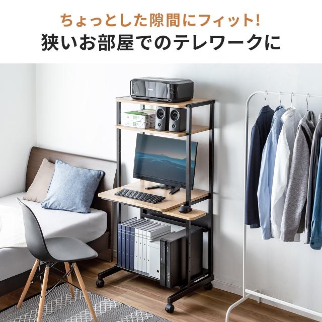 パソコンラック パソコンデスク 木目調 幅65cm 耐荷重100kg 収納棚付 キャスター付 マウステーブル付 スリム[100-RAC012]